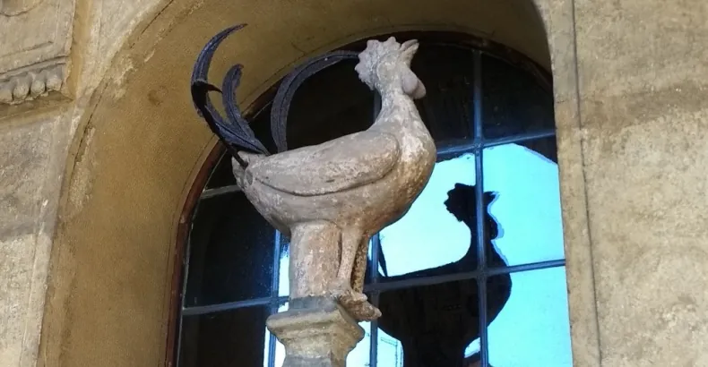 Sempre connesso al tema della passione di Cristo è simpatico notare “il gallo di San Pietro“, una stuetta del XIV sec. raffigurante il gallo che cantò dopo che San Pietro negò di essere un seguace di Gesù.