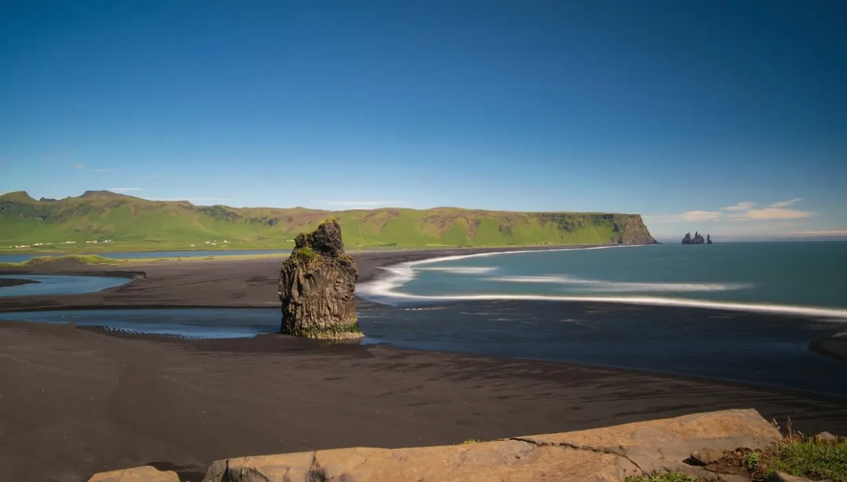 Dal paesino di Vik si può raggiungere la bella spiaggia di Reynisfjara: è una spiaggia scura di sabbia vulcanica, contornata da colonne basaltiche abbastanza scenografiche. Nella scogliera che circonda la spiaggia si aprono grotte dove nidificano i pulcinella di mare. In lontananza si vede il promontorio di Dyrhólaey. E’ sicuramente una tappa da non perdere nel giro in Islanda.