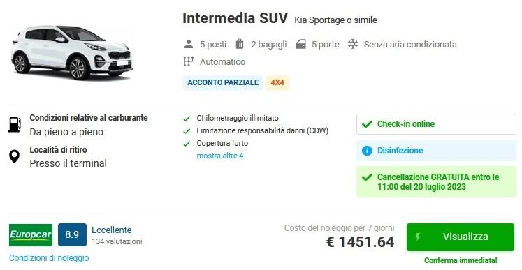 E qui arriviamo ad un altro punto importante, anzi fondamentale: quando prenoti un’auto a noleggio NON devi considerare solo il prezzo, ma anche e soprattutto le condizioni a cui l’auto ti viene noleggiata, eventuali restrizioni, e le condizioni di assicurazione incluse nella tariffa del tuo noleggio (e il costo delle coperture opzionali).