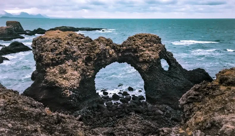 Sulla parte meridionale della punta della penisola un tratto particolarmente bello della costa è quello nei dintorni del paesino di Arnarstapi: la regione costiera è caratterizzata dalla presenza di basalti colonnari e di grotte naturali, come la Grotta lavica di Vatnshellir (che si trova poco più a ovest, nell’area del parco Snæfellsjökull).