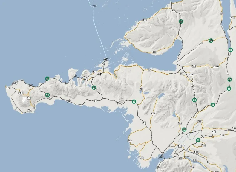 Per arrivare allo Snæfellsjökull bisogna seguire la strada 54 e poi la 574, come mostra questo video: