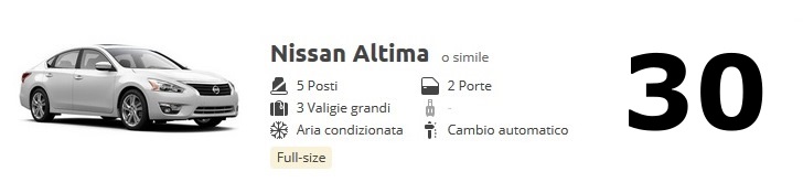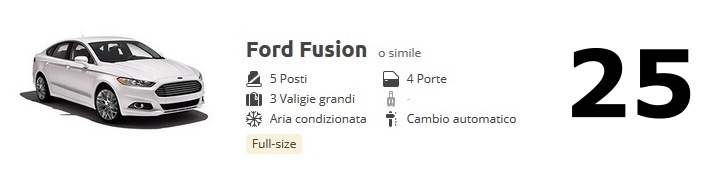 - Le full size (berline grandi) sono comodissime, ben accessoriate, e hanno comunque consumi ragionevoli (per gli standard americani) di 25 mpg.